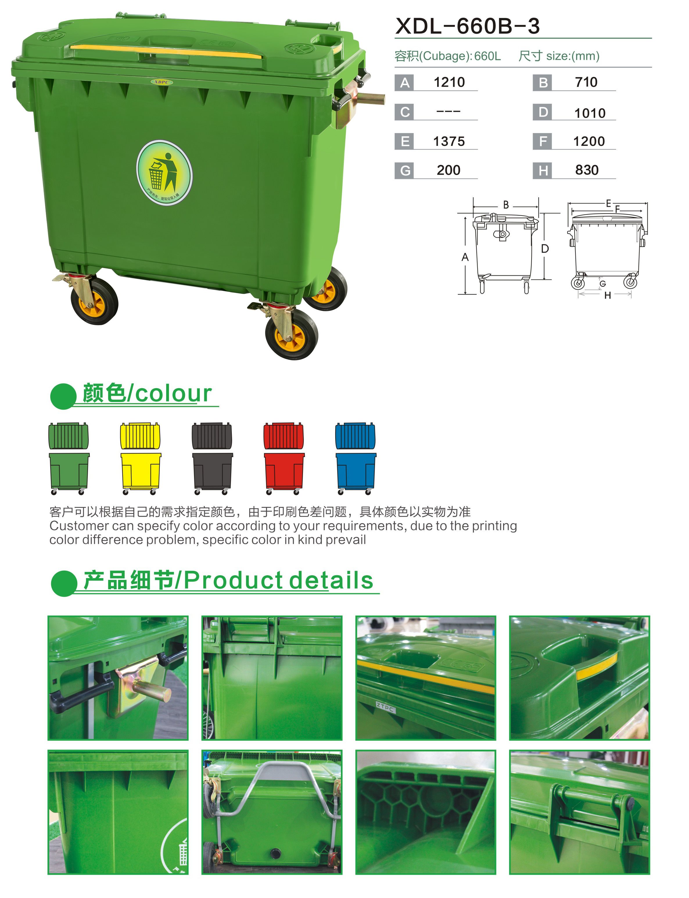 660L移動四輪大型垃圾車