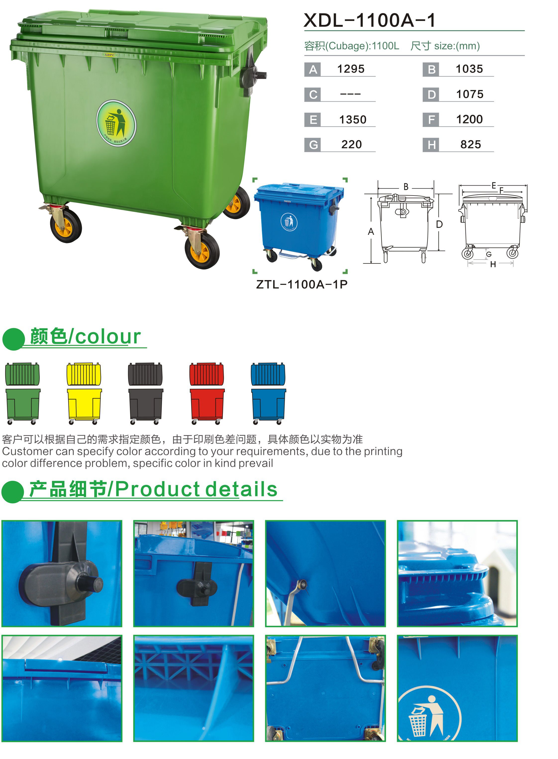 1100升掛車式手推垃圾車